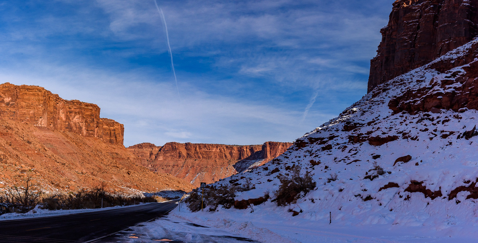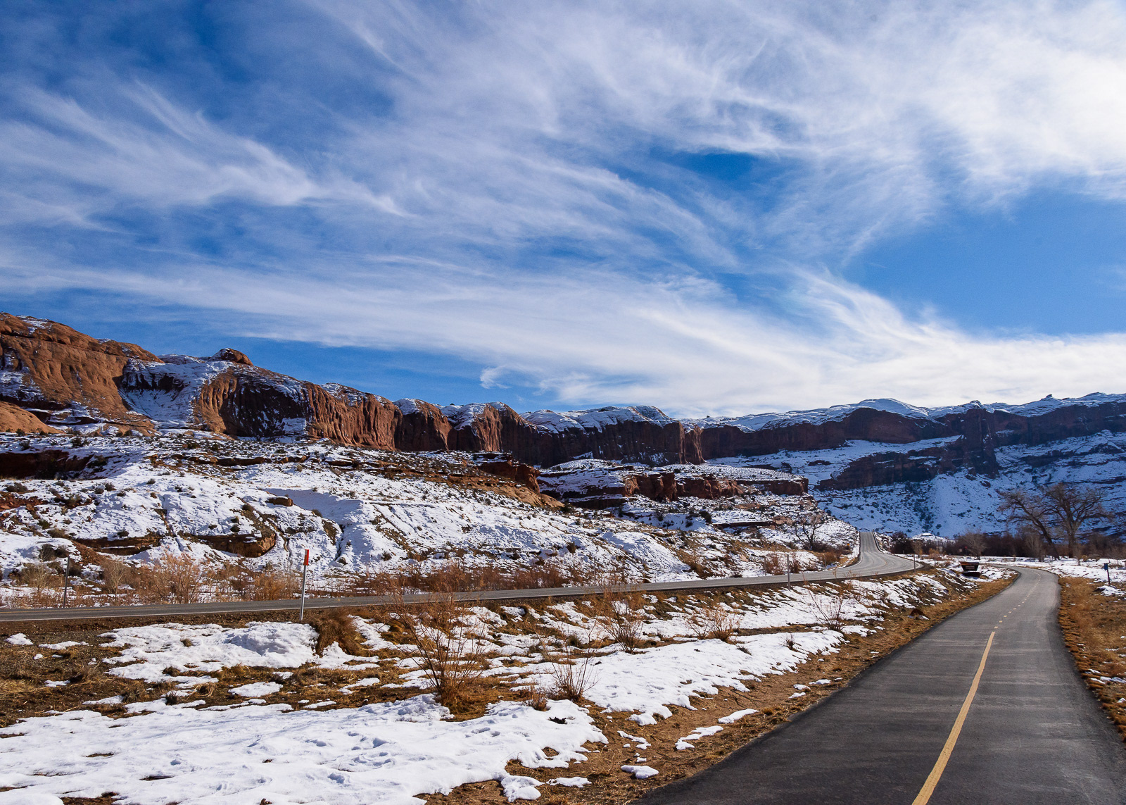 Just outside of Moab, UT is Utah 128 which runs along the Colorado river. Along this route is also a road that leads to the LaSalle mountain loop.